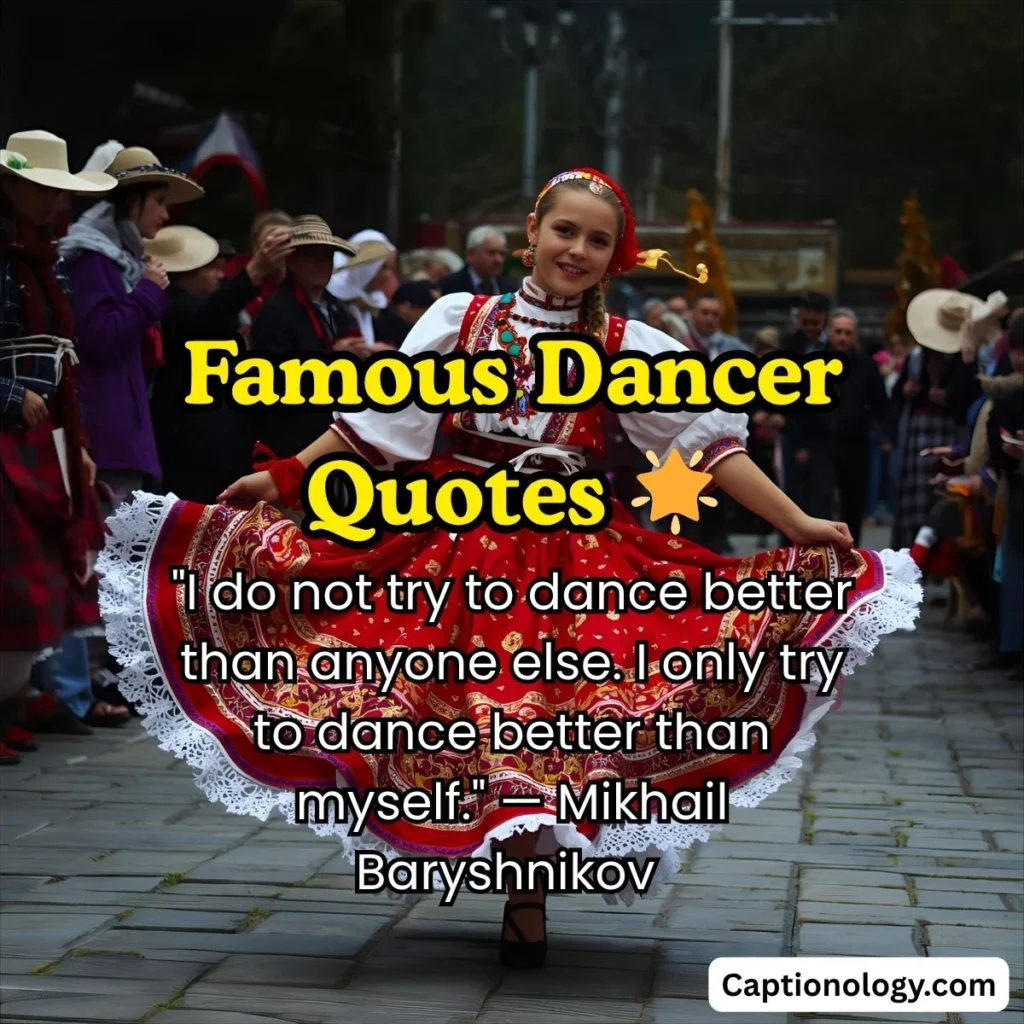 - “I do not try to dance better than anyone else. I only try to dance better than myself.” β Mikhail Baryshnikov
